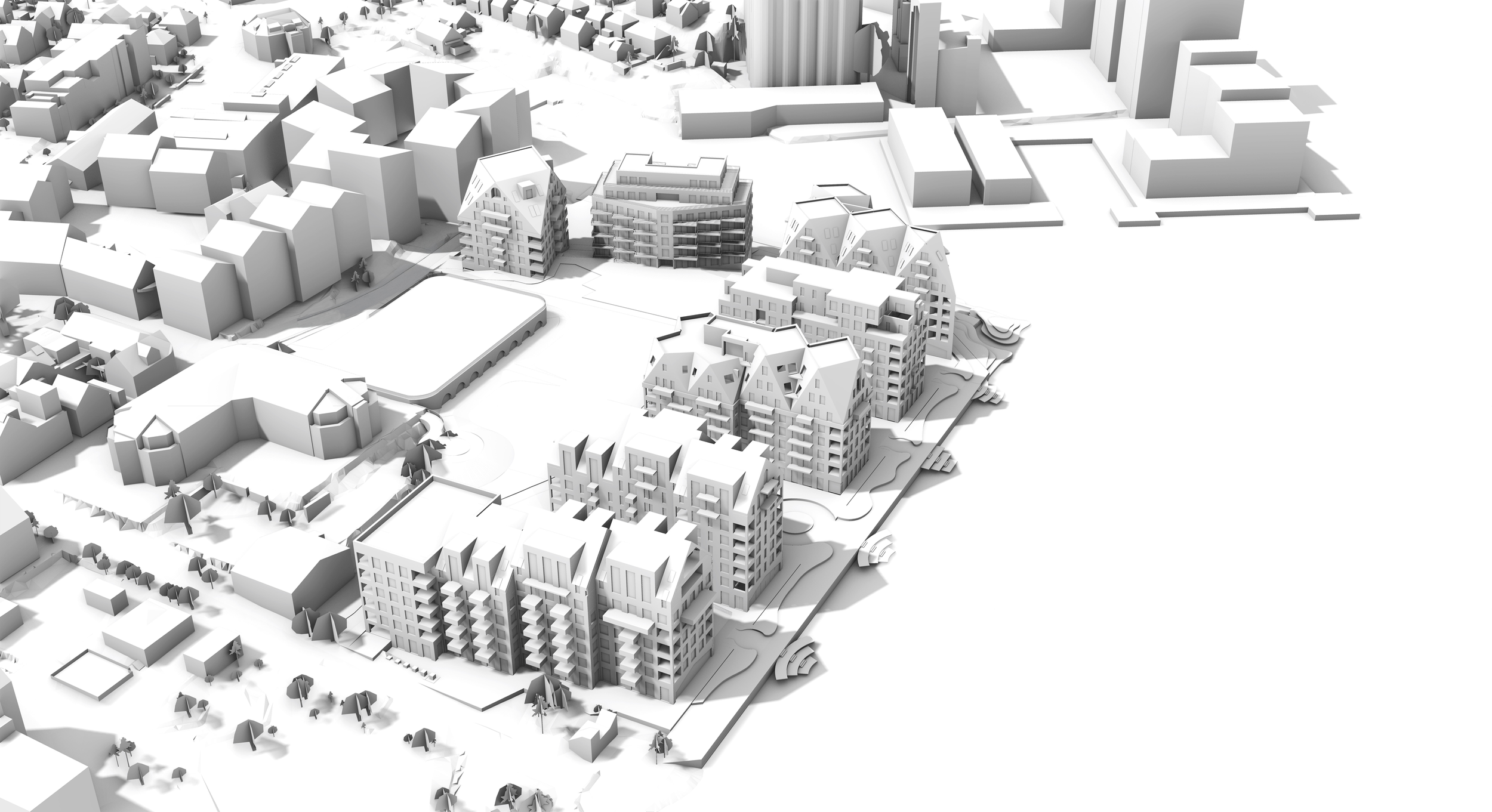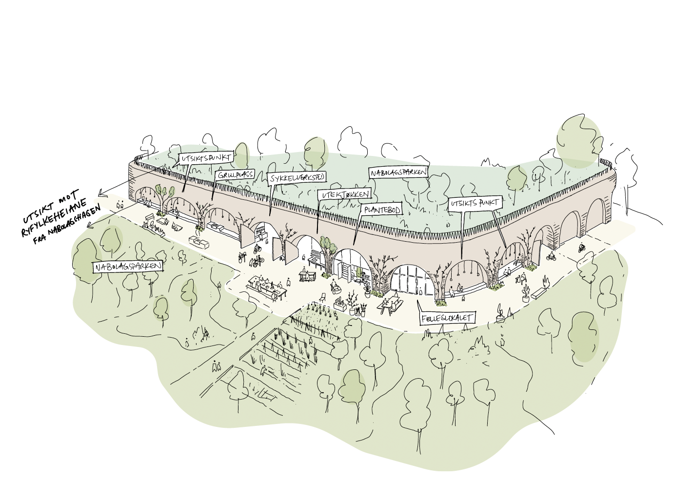 Et særpreg er den karakteristiske takformen, inspirert av sjøhusene langs kysten, men med en moderne vri. Prosjektet inkluderer også en stor felles hage og naturpark åpen for nabolaget, samt løsninger som gir god kontakt med fjorden.